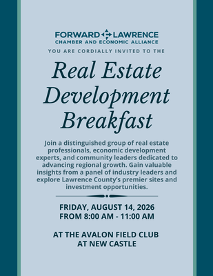 Join a distinguished group of real estate professionals, economic development experts, and community leaders dedicated to advancing regional growth. Gain valuable insights from a panel of industry leaders and explore Lawrence County’s premier sites and investment opportunities.